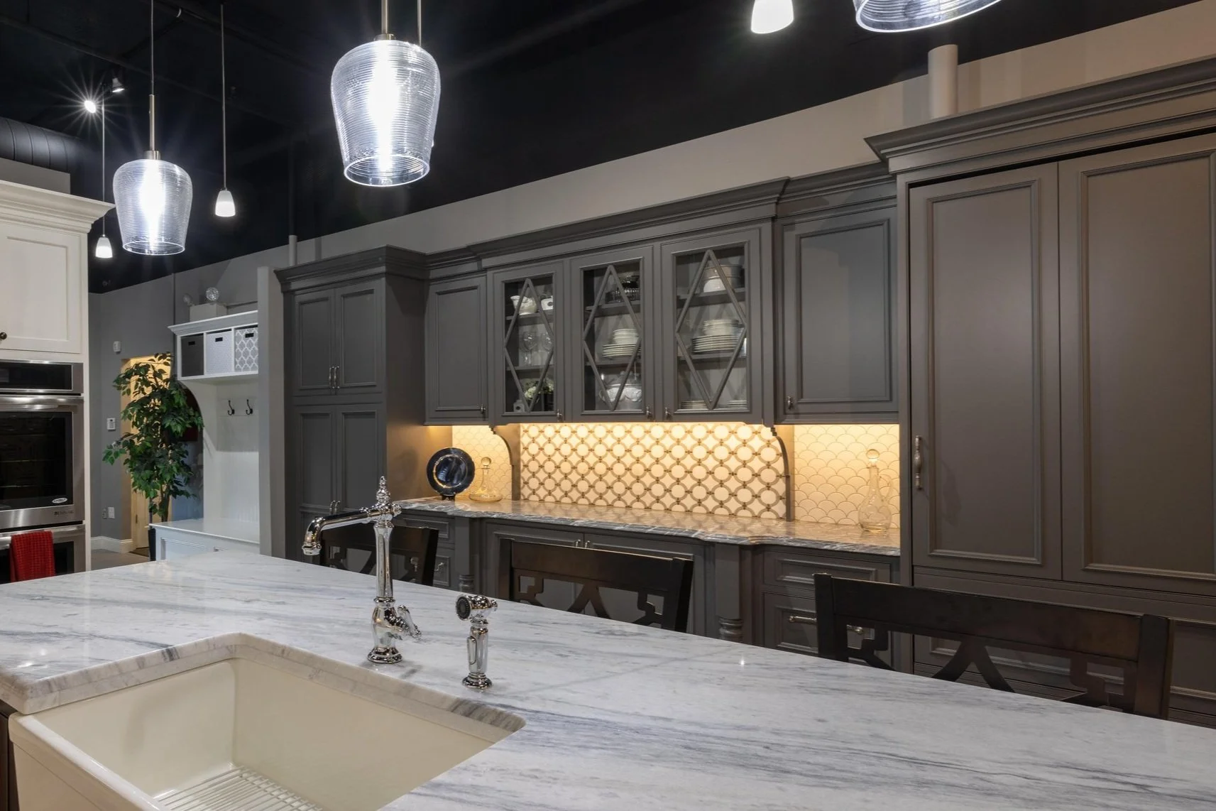 Countertop: Grey calcite marble with cove ogee edge profile